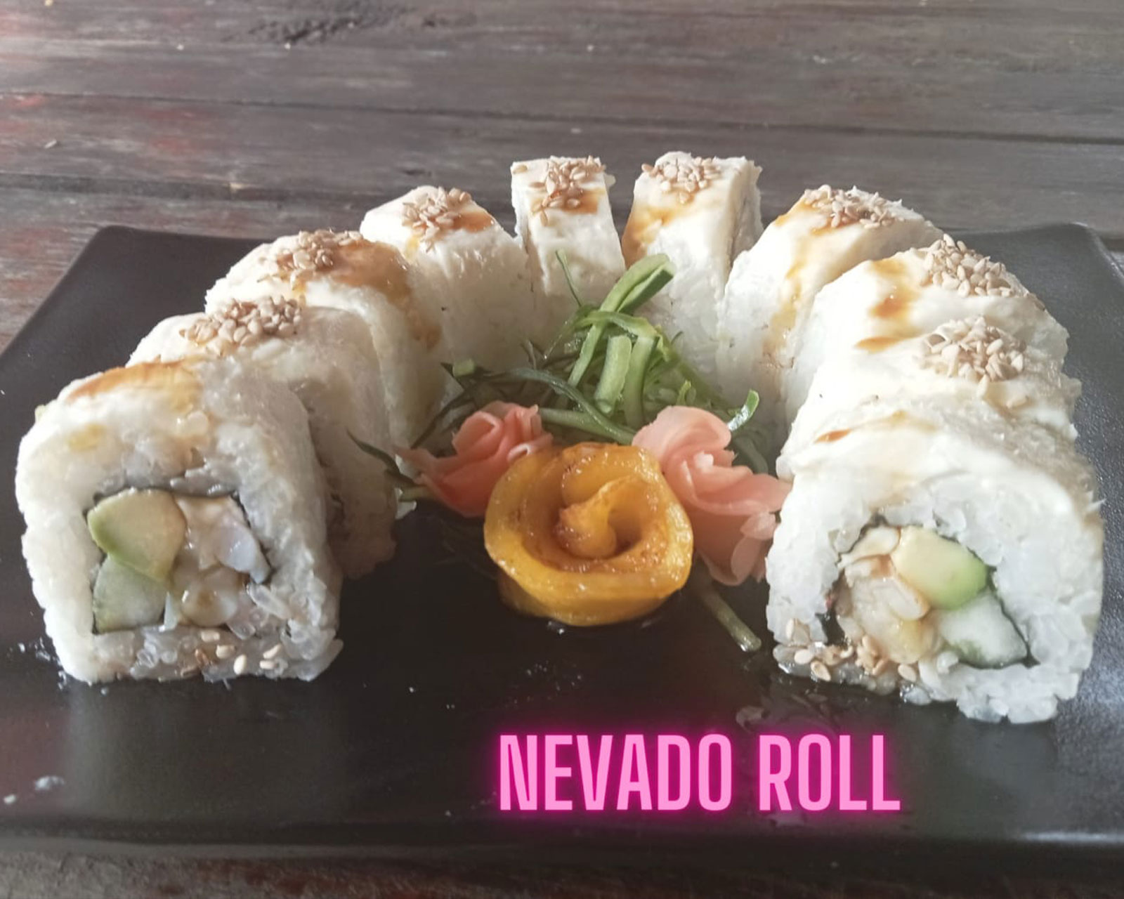 Camarón, pepino y aguacate por dentro, filadelfia por fuera, suave salsa de anguila y ajonjolí encima.